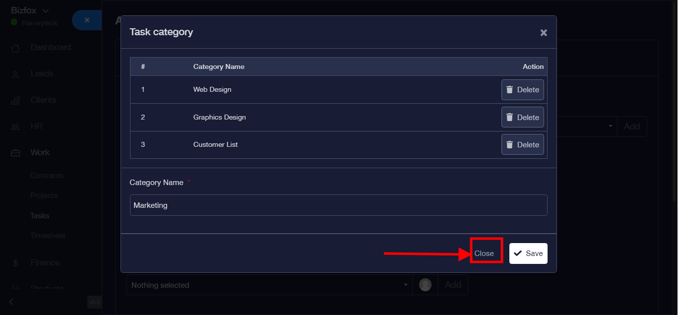 Step 4: Enter “category name” on the popup modal and click on the “Save” button to save category.