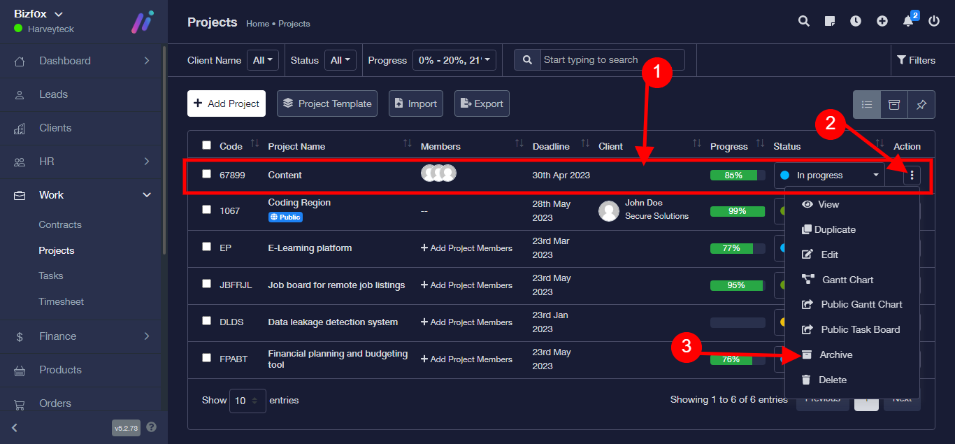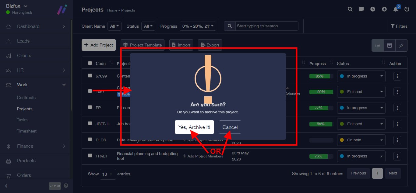 Step 3: From the pop-up modal, Select “Yes Archive It” to archive project or Select the “Cancel” to cancel process.
