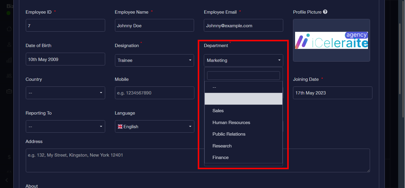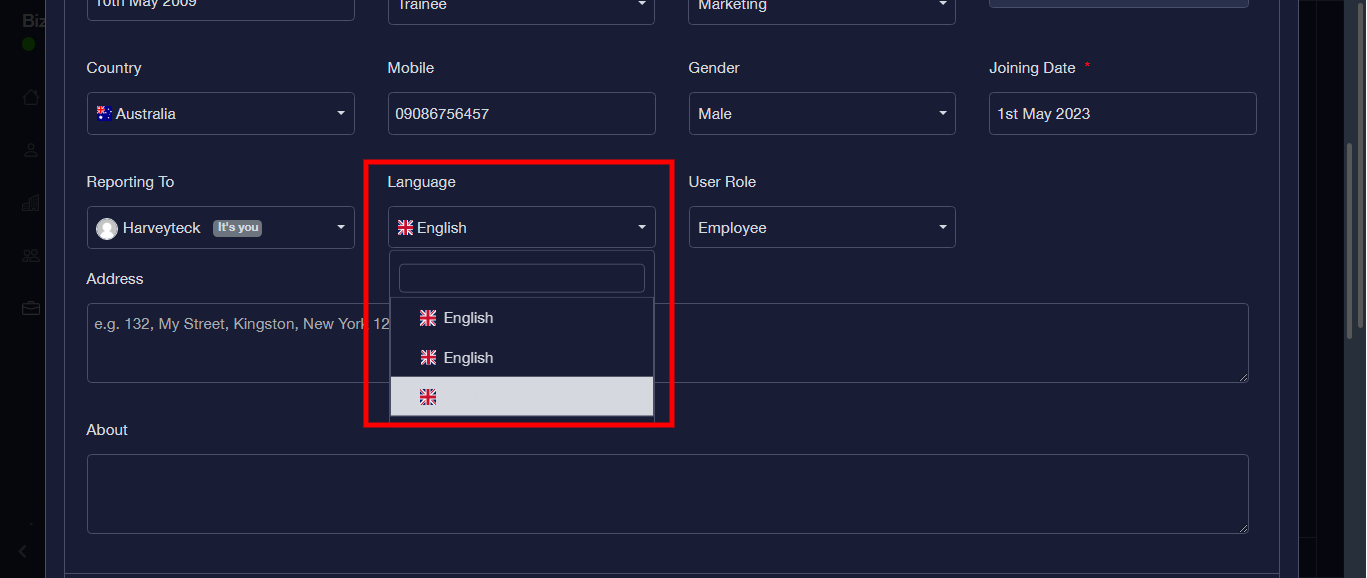 Step 18: Fill the “Address” and “About” form