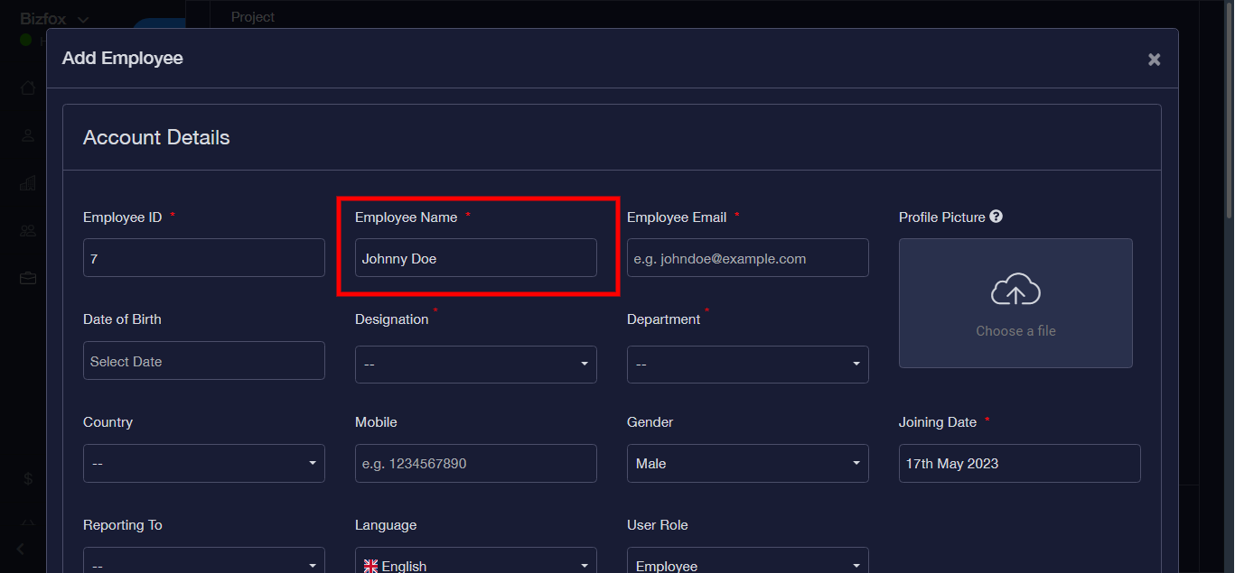 Step 6: Enter Employee Name