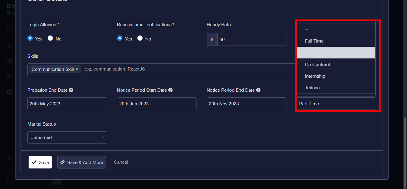 Step 25: Click the Save button to save. or the the “save and add more” to save and add more details as preferred.