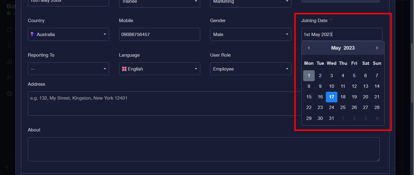 Step 14: Enter Joining Date