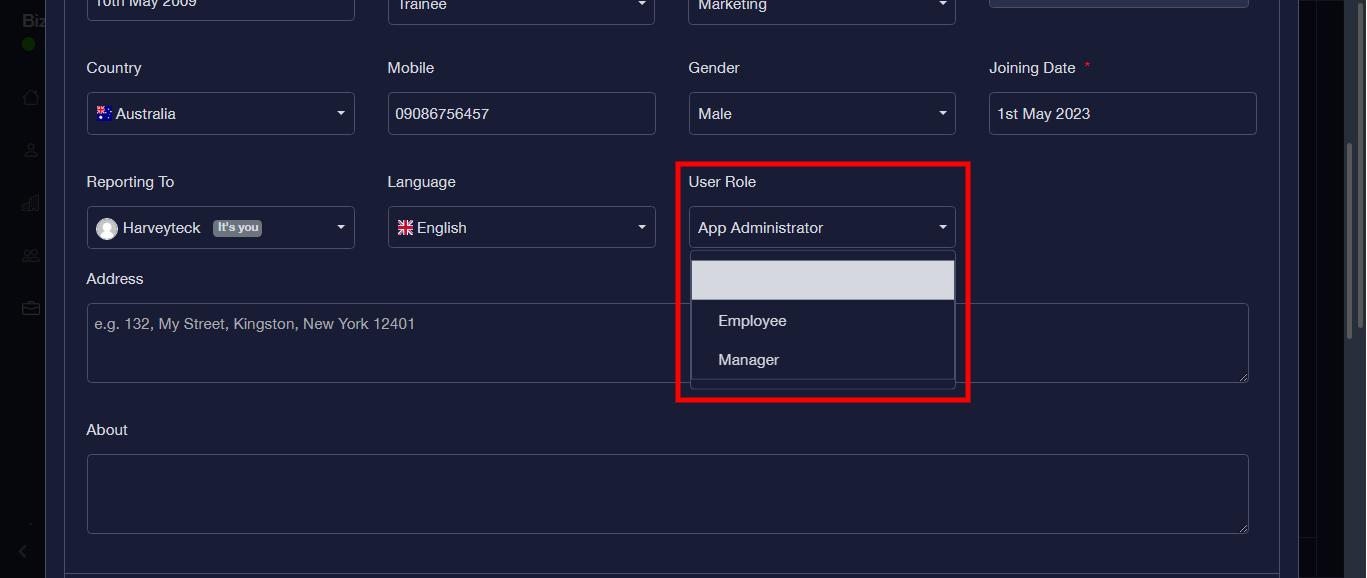 Step 17: Select “User Role”