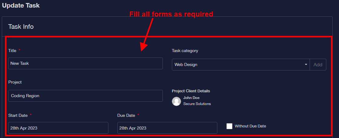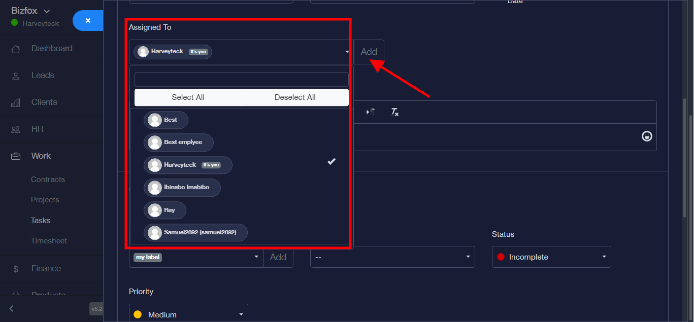 Step 4: Select an employee to assign task to from the dropdown.