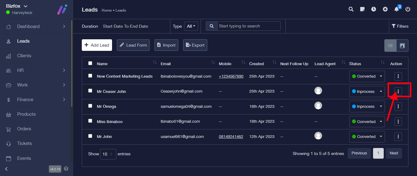 STEP 3: Click the triple dot icon on the lead you want to change to client