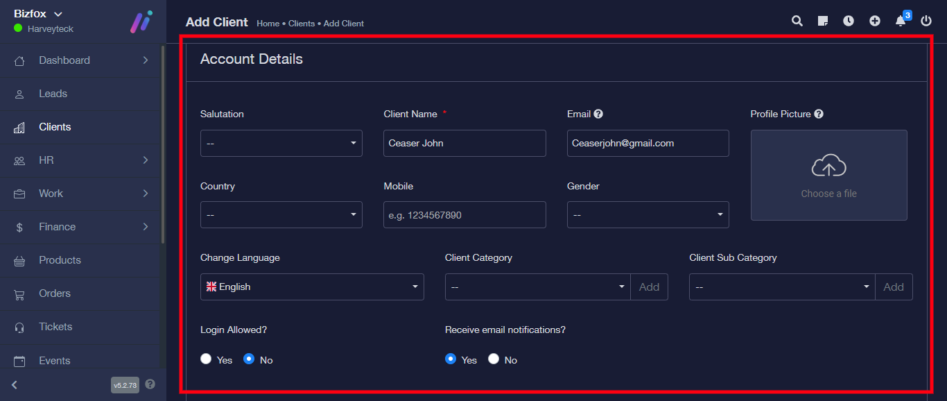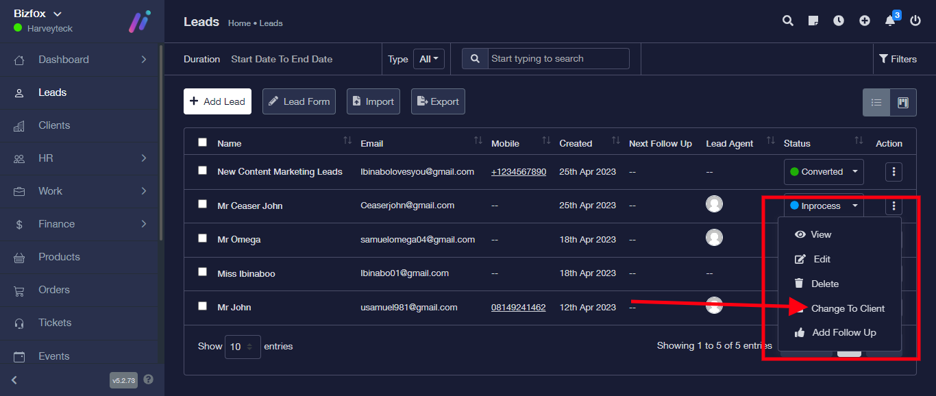 STEP 5: Enter the details of the lead you wish to change to client