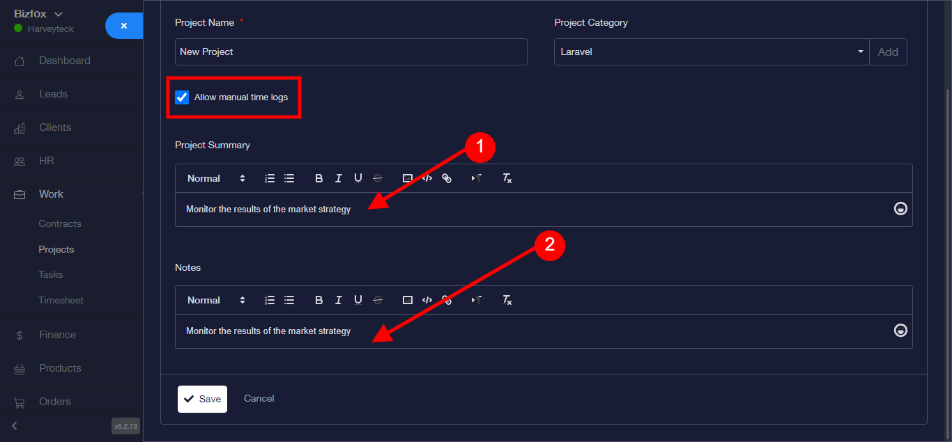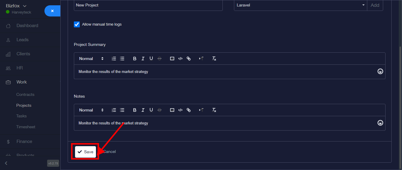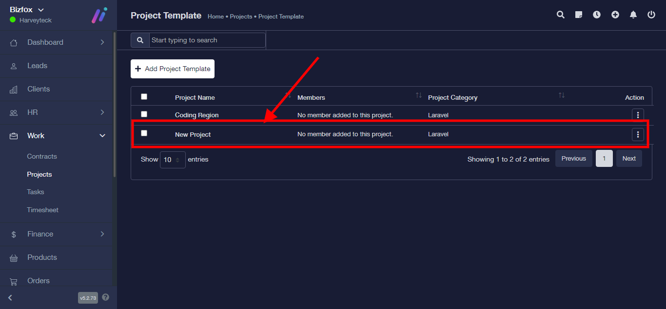 Step 1: After you’ve logged into your Business manager account, it leads you to the dashboard and there you get to see the left nav-bar and a table. On the left-nav bar click on “WORK” dropdown, It takes you to “PROJECT” Click on “PROJECT”