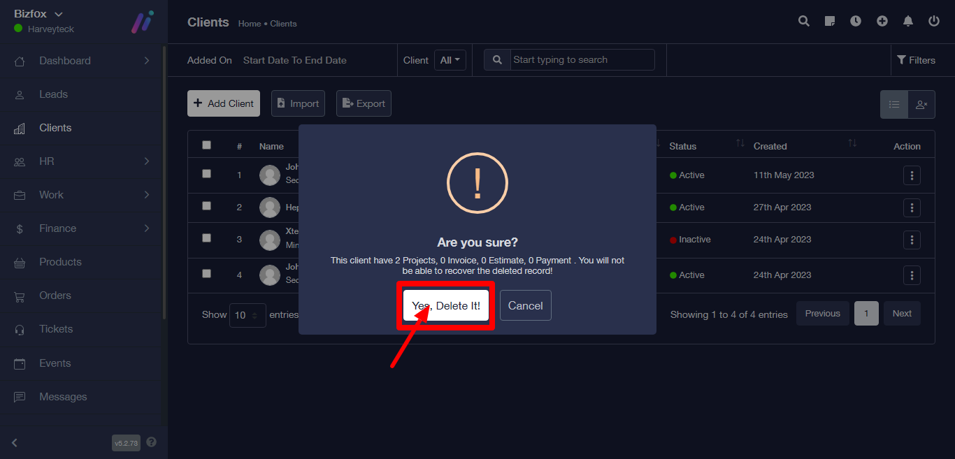 STEP 5: A page showing Yes delete it and cancel will come up after clicking on the delete button. Click on the Yes Delete It, a success message will appear afterward.