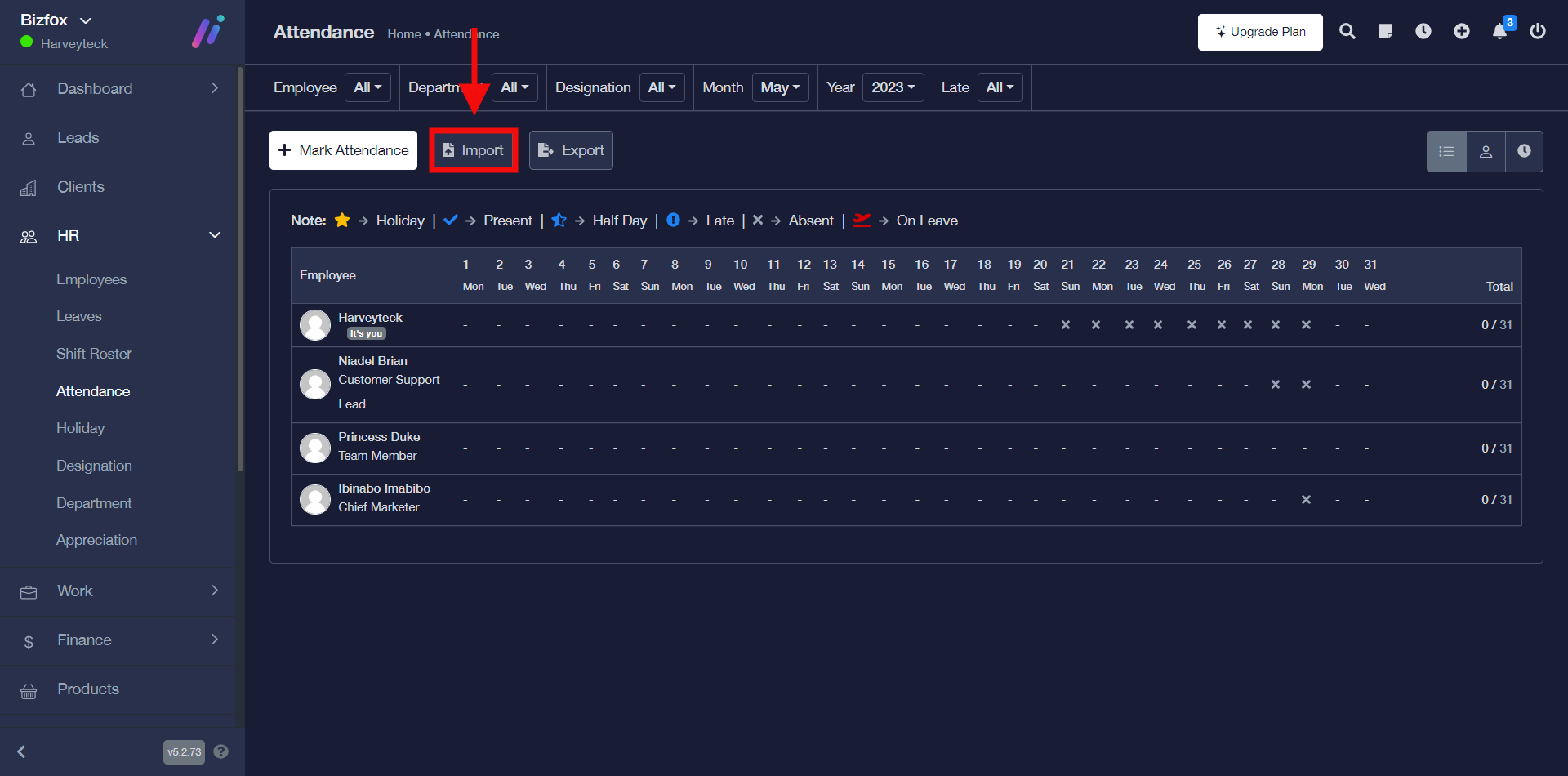 STEP 2: Go ahead to click the “import” button, after which you will see a window where you can import your attendance file either in a xls, xlsx, or csv.