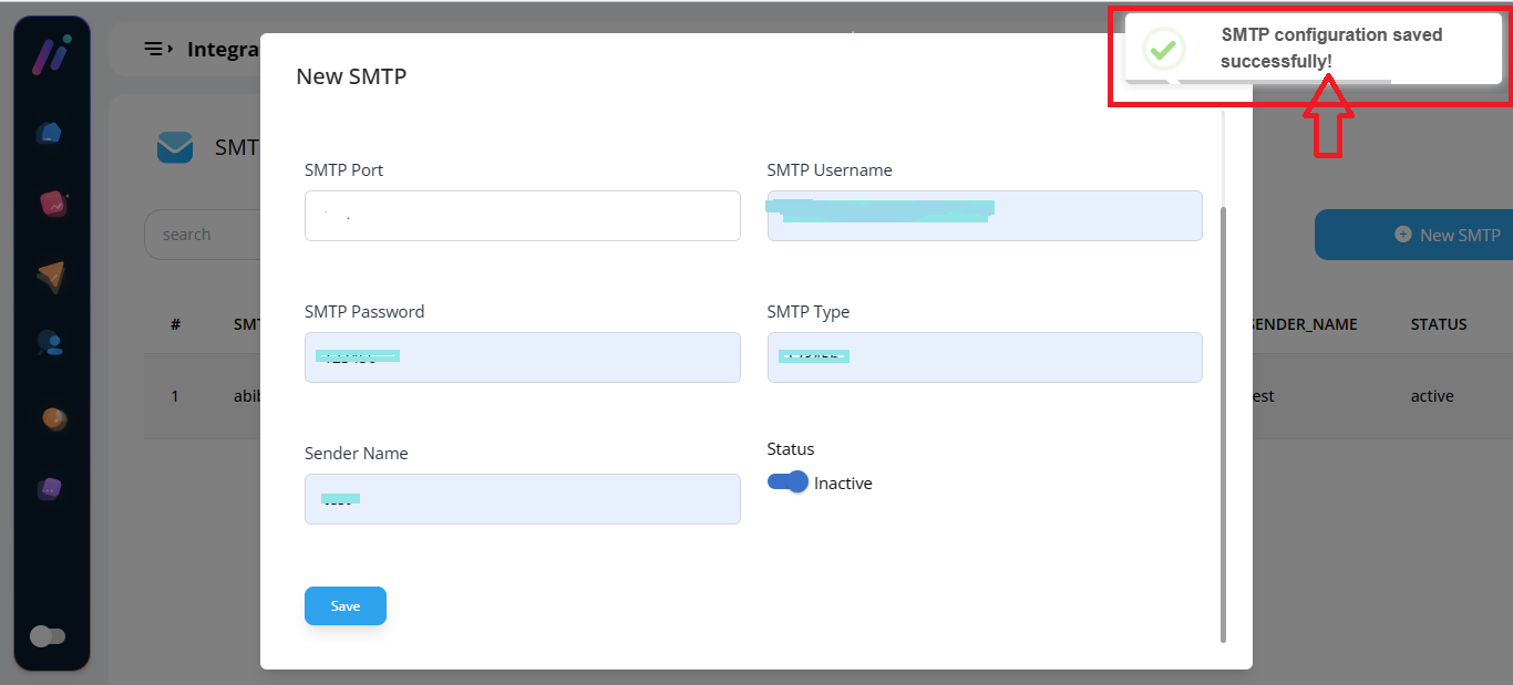 STEP 6: From the option below, enter the new SMTP information needed, as shown below.