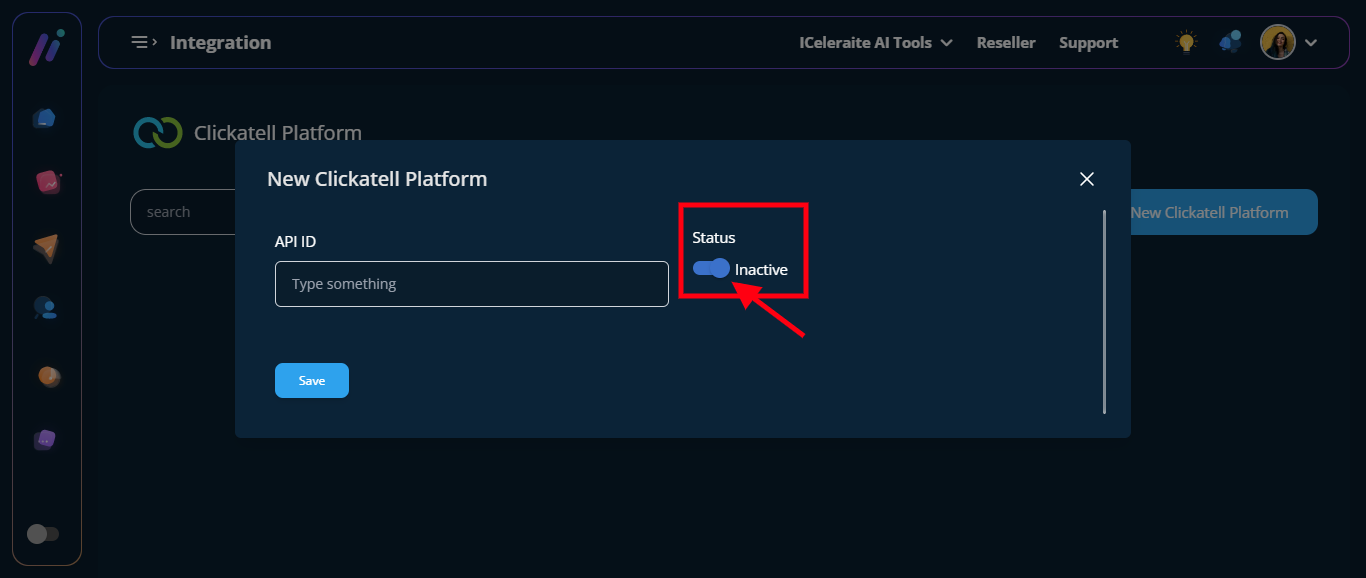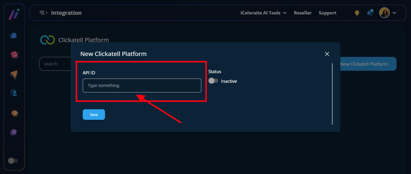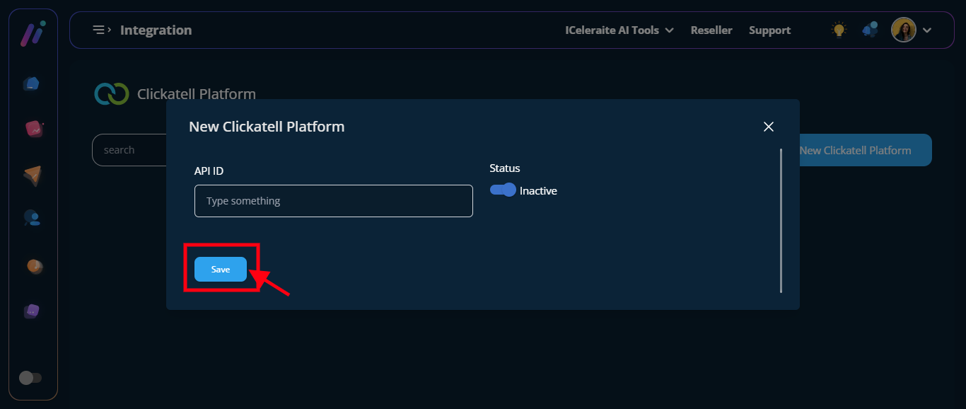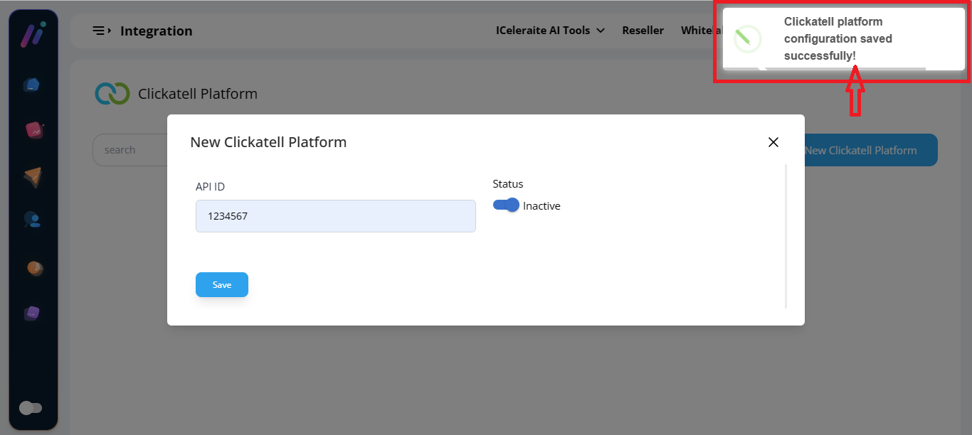 STEP 6: From the option below, enter the new Clickatell Platform information needed, as shown below.