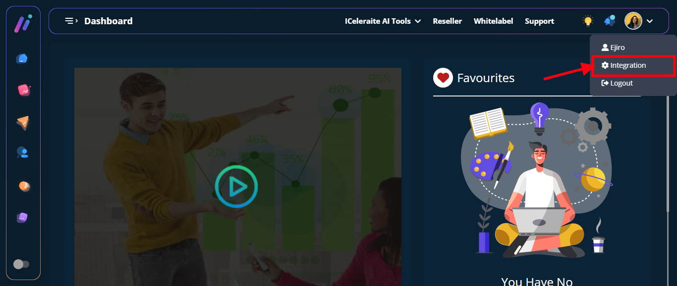 STEP 3: Click on “Integration” from the drop-down options.