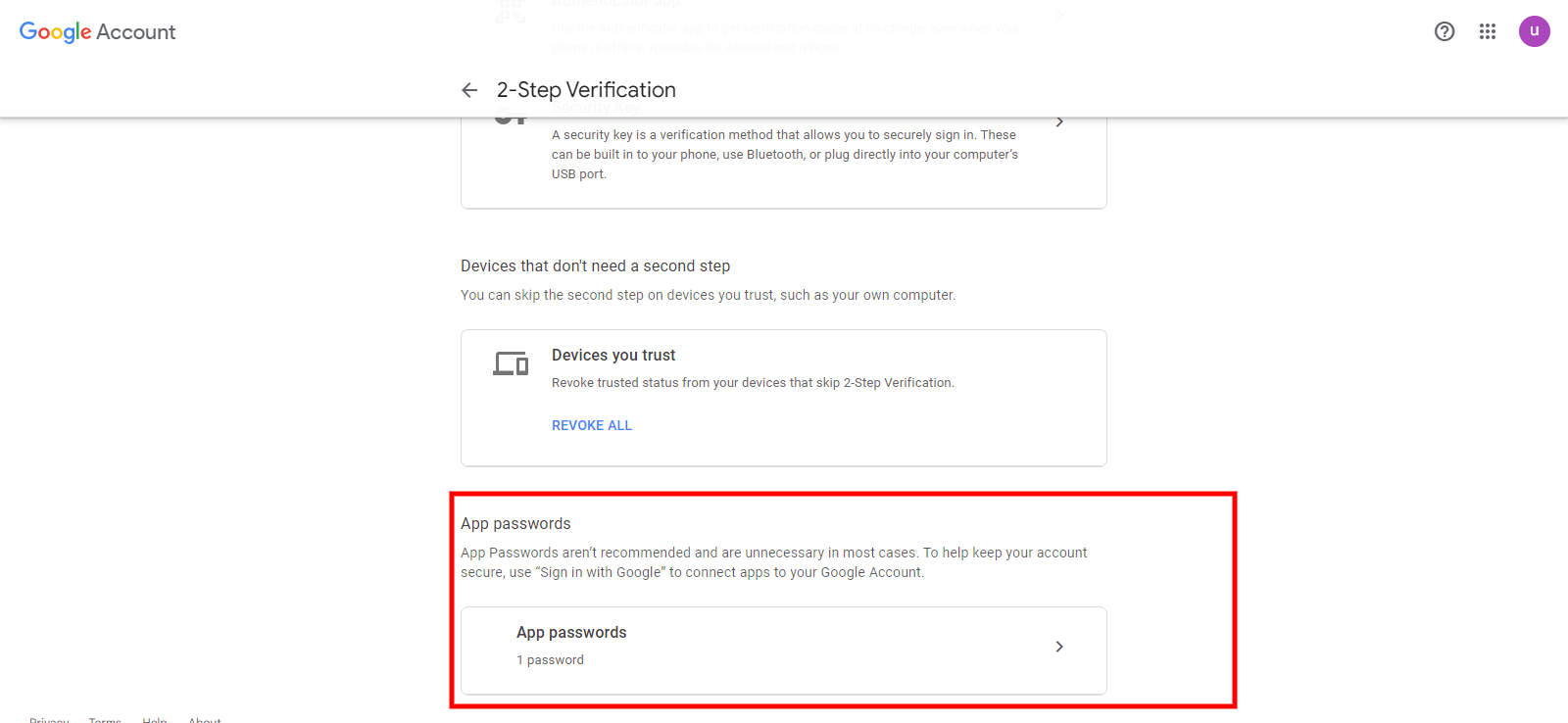 Then click on it and scroll to the App password section