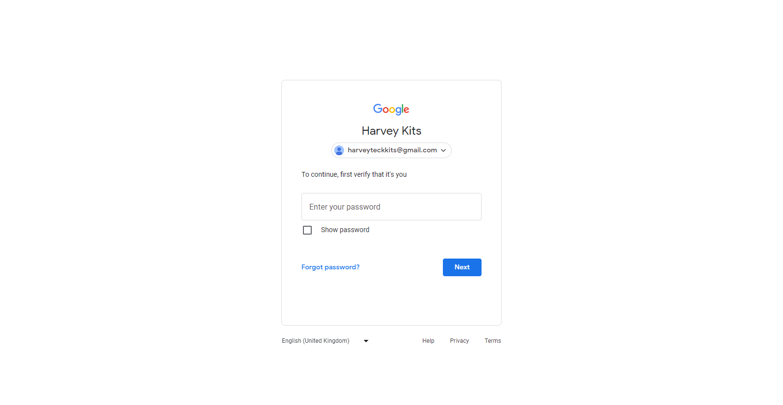 You will be redirected to the Gmail login form to enter your password