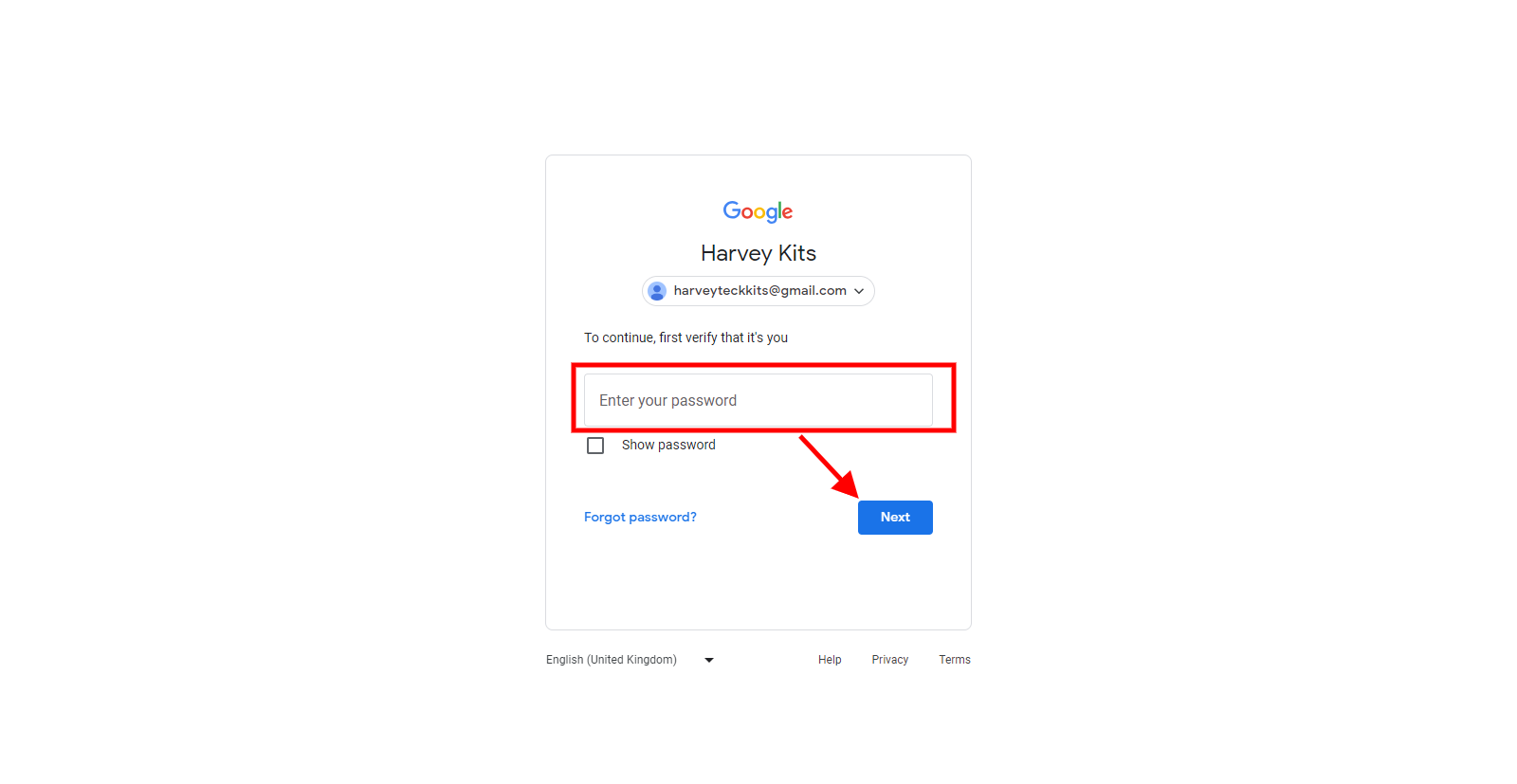 Enter your password and click on the next button