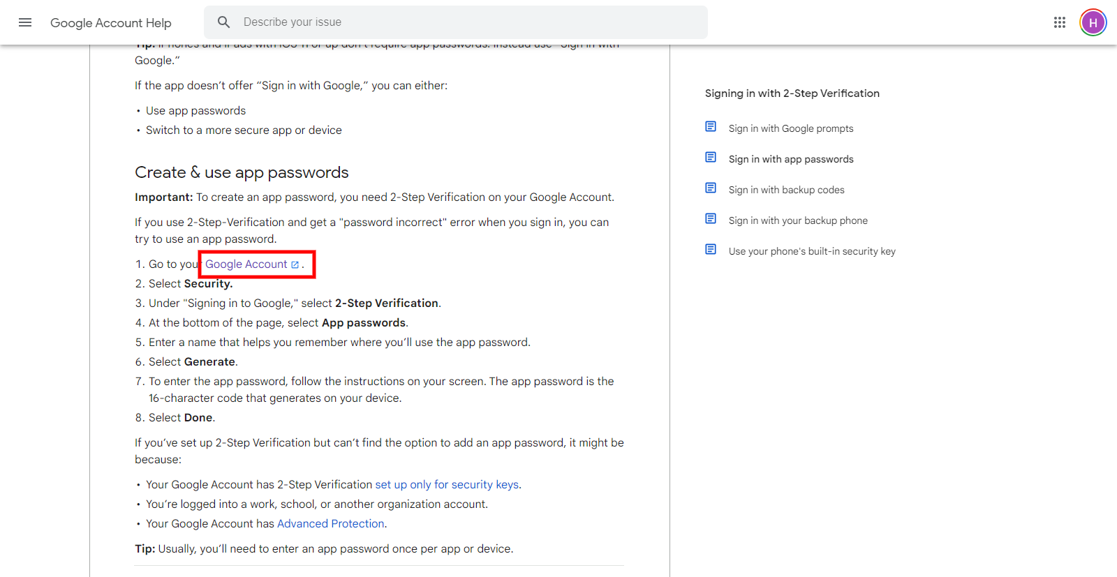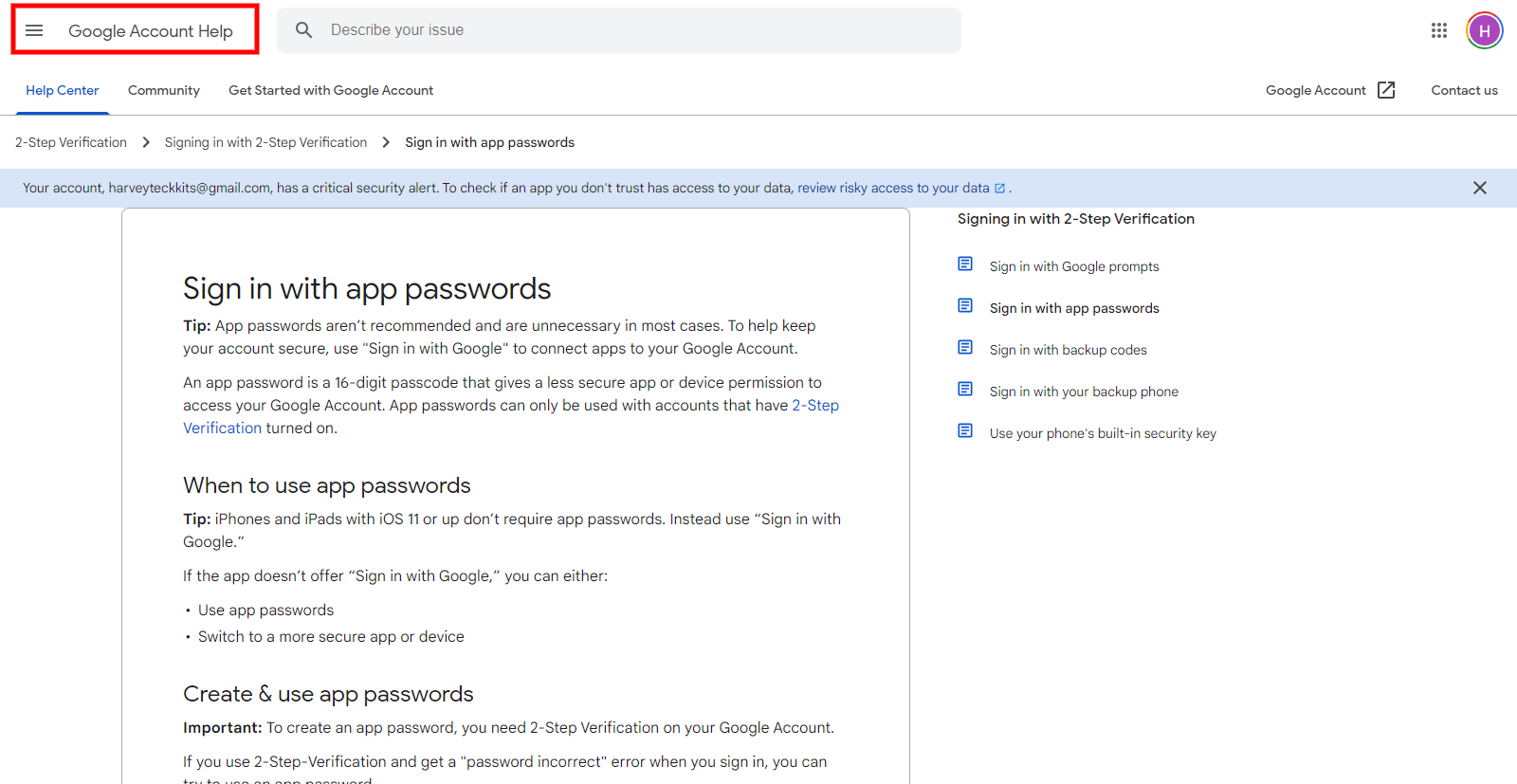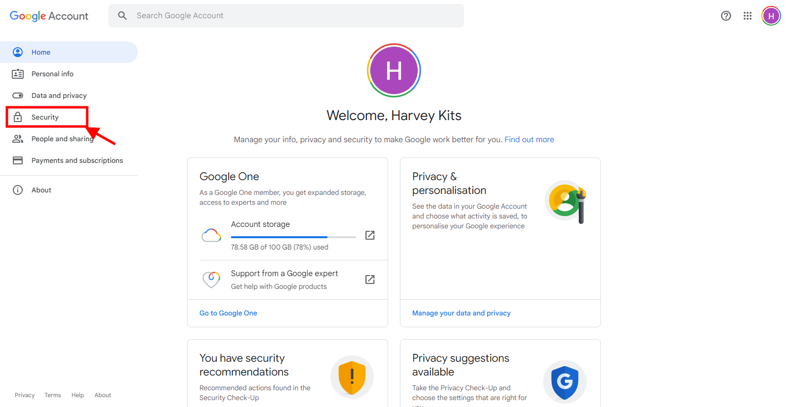 Action 1: Click on this link to your Google account to help.