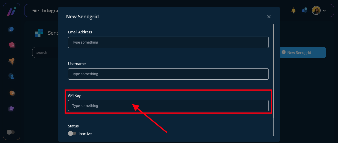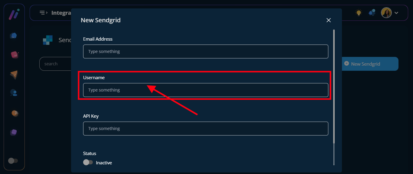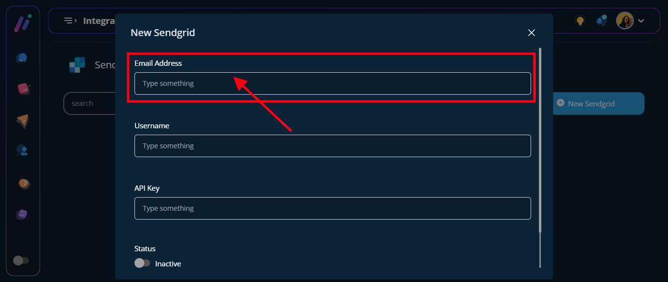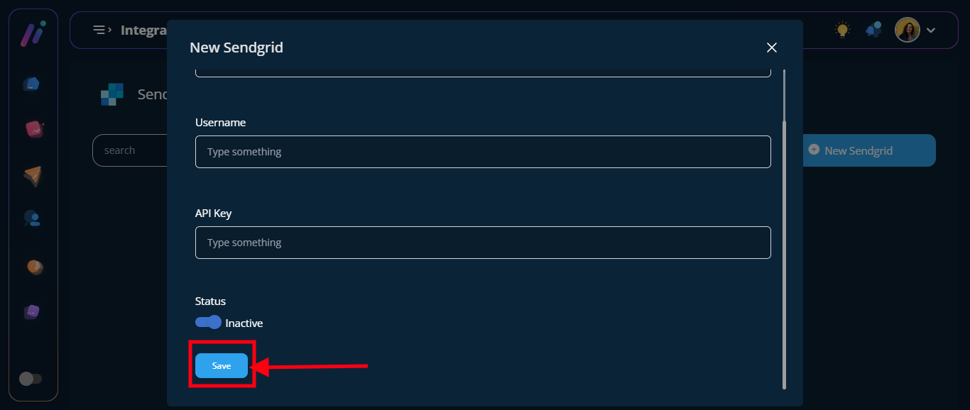 STEP 6: From the option below, enter the new Sendgrid information needed, as shown below.