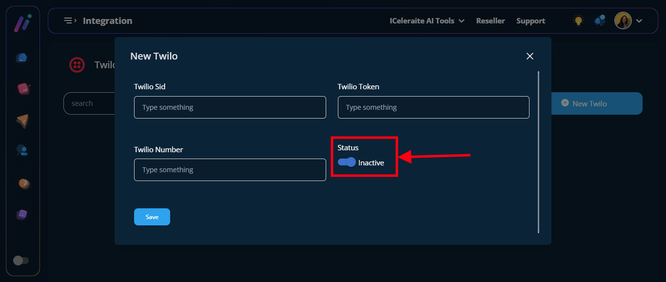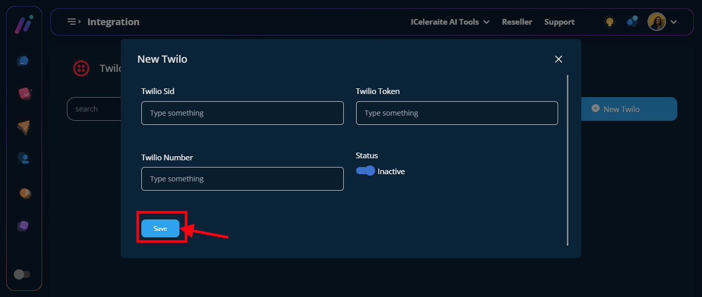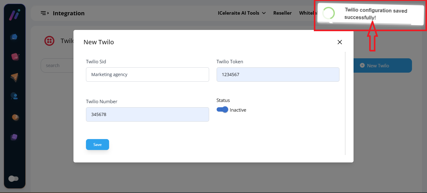 STEP 6: From the option below, enter the new Twilo information needed, as shown below.