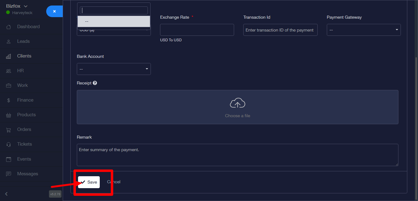 STEP 6: Click on payment at the top bar next, it will then direct you to the payment page with options to add payment and export. Then click on the add payment button.