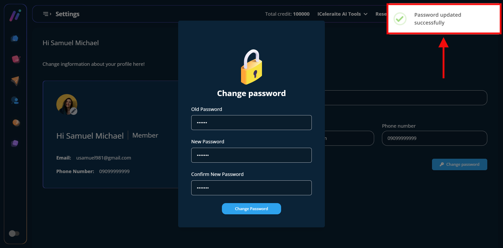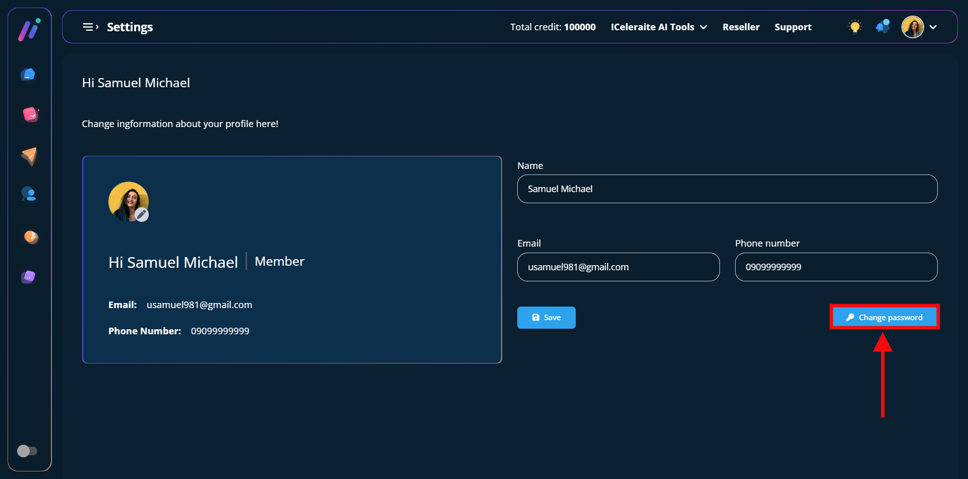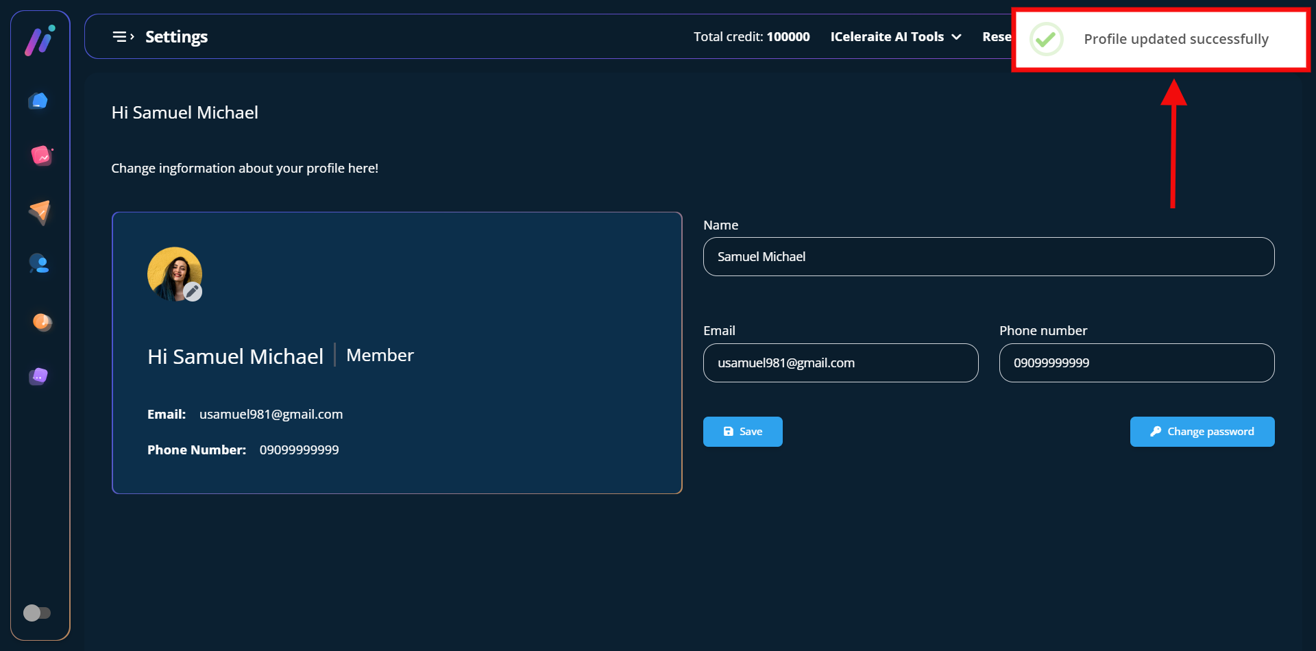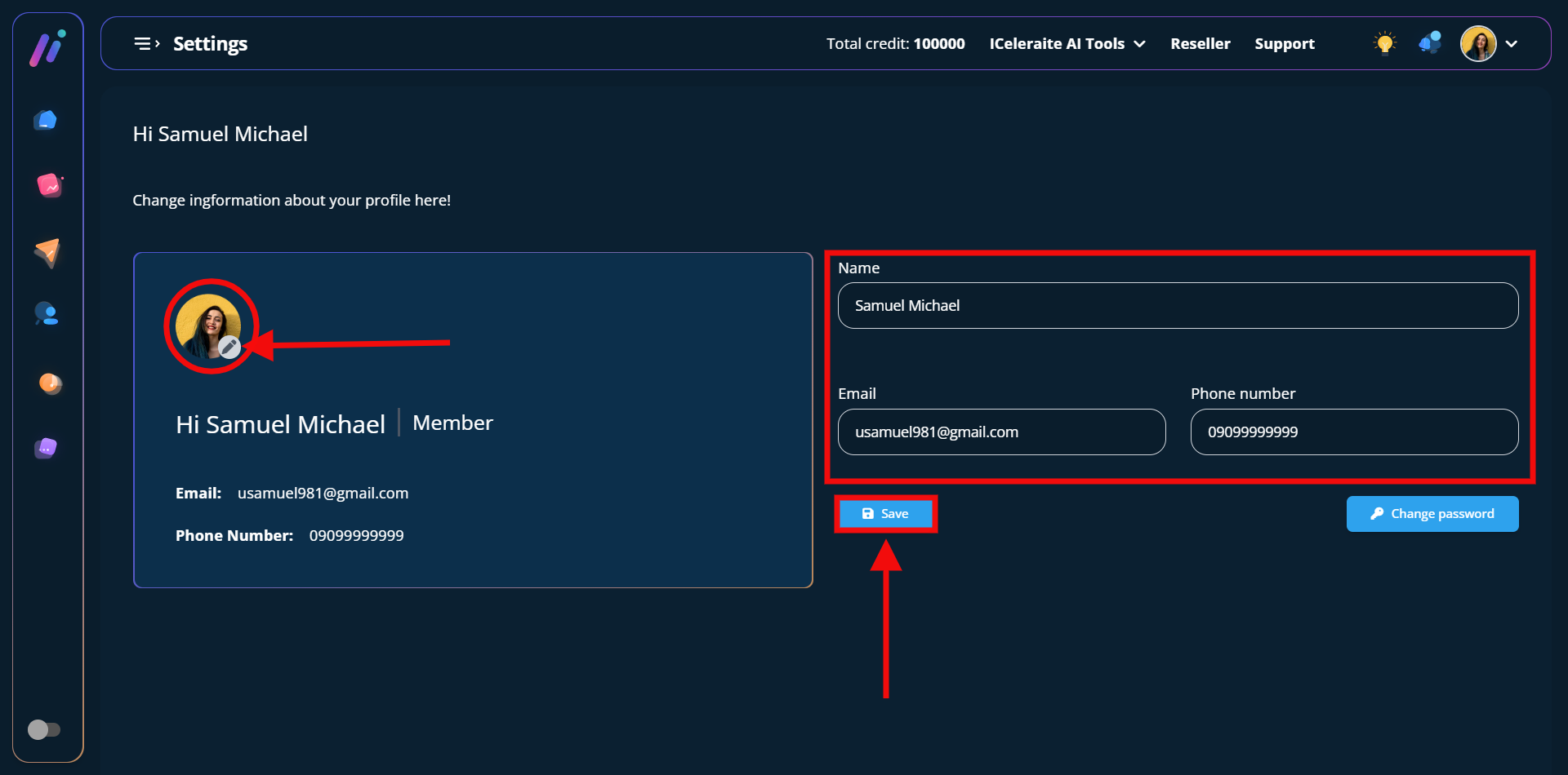 You can set your profile information on iCeleraite dashboard which involves; adding your name, email, phone number, profile picture, and even a password reset.