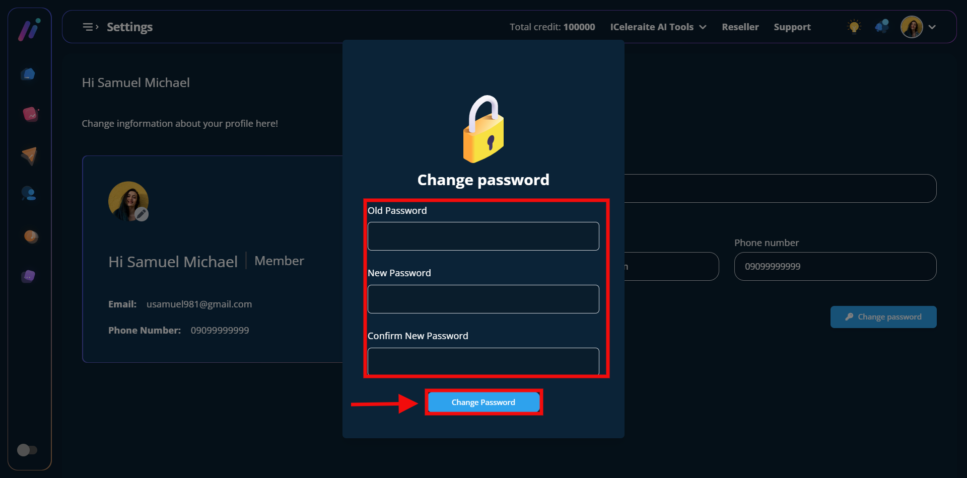 STEP 2: You will see the option to enter your old password, as well as a new password and you’d have to reconfirm the new password after which you can click the “change password” button.