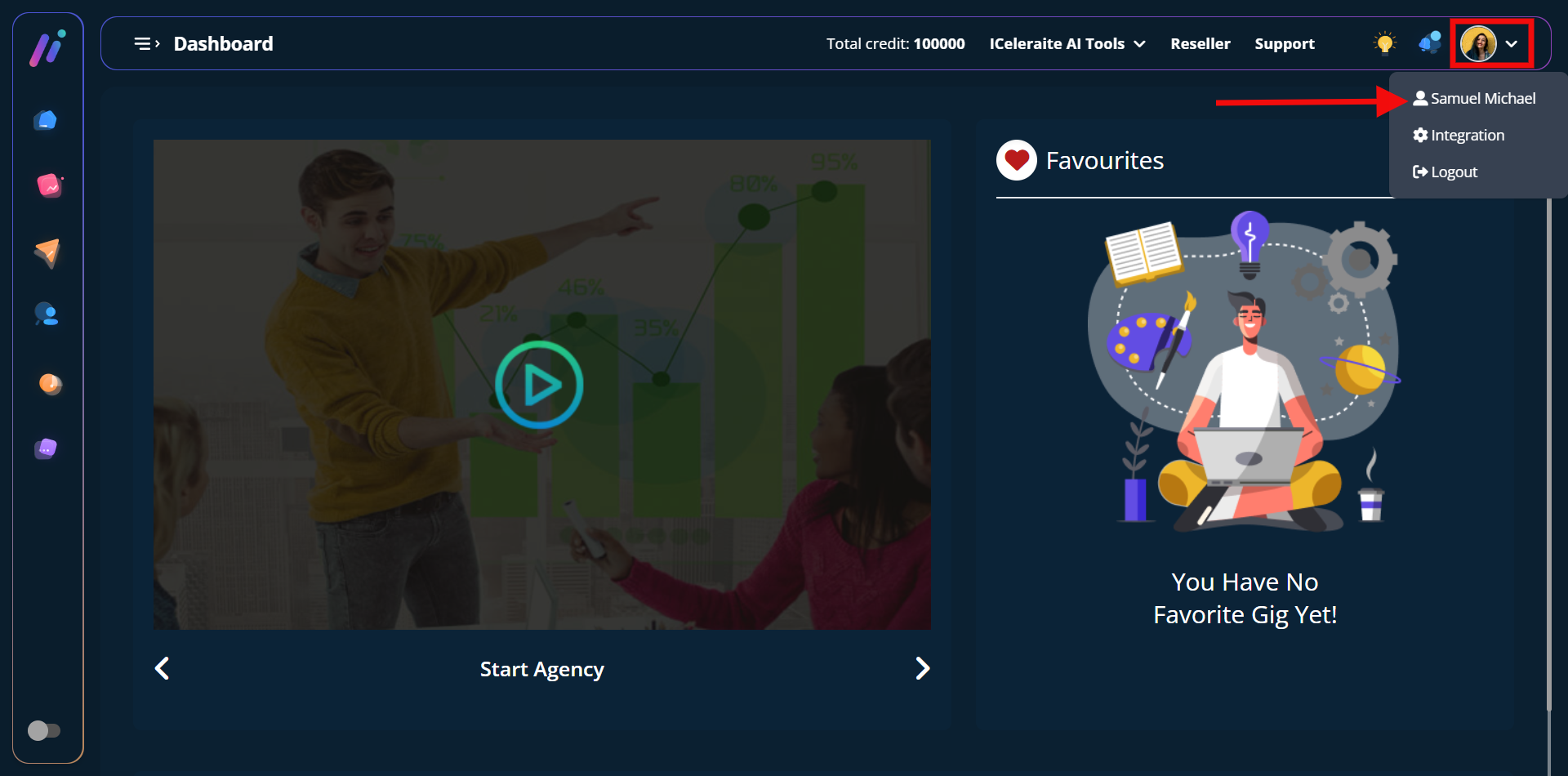 STEP 1: Click on the profile picture area in the top side menu bar of your dashboard and click on the user icon that has your name.
