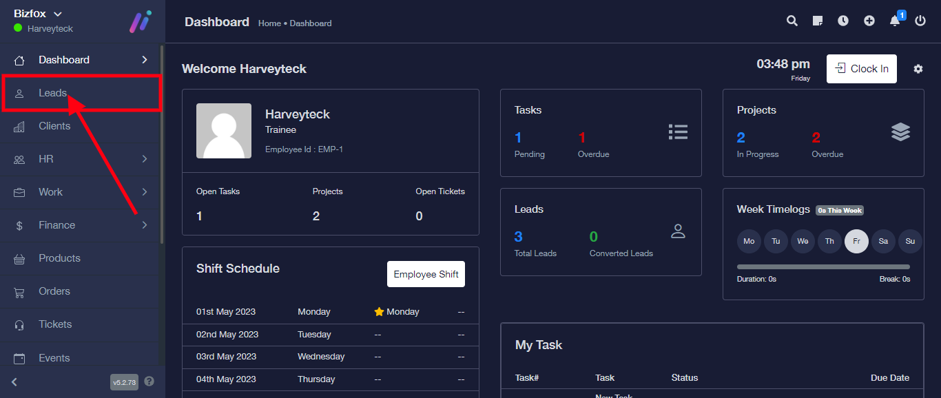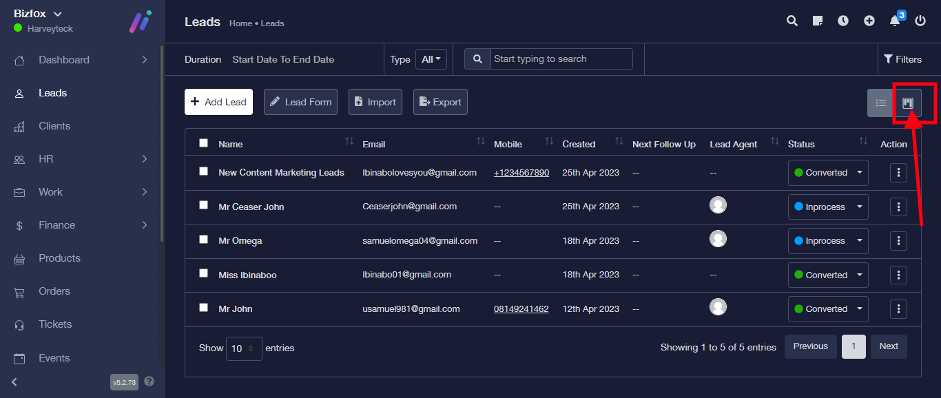 STEP 2: At the right side of your dashboard, click on “Leads”