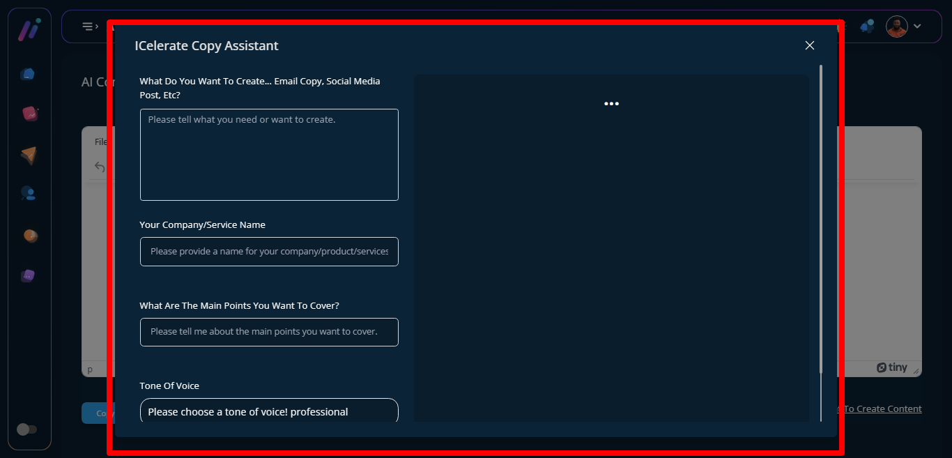 STEP 3: When you click on use AI content to create content it directs you to another page with empty modal form .