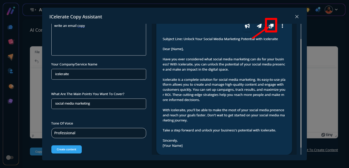 STEP 6: Click on the copy icon to copy content to the