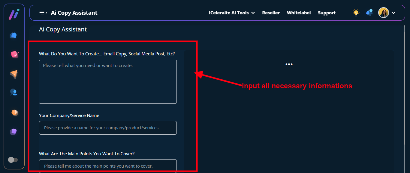 After clicking on the ‘AI Copy Assistant, you would be taken to the AI Copy Assistant page