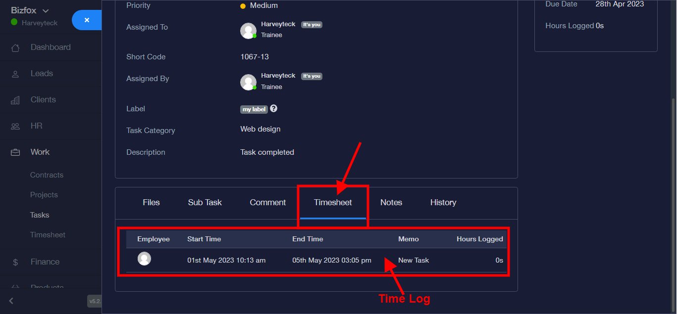 Step 3: It takes you to a new module, Click on “Timesheet” to view “Time Log”